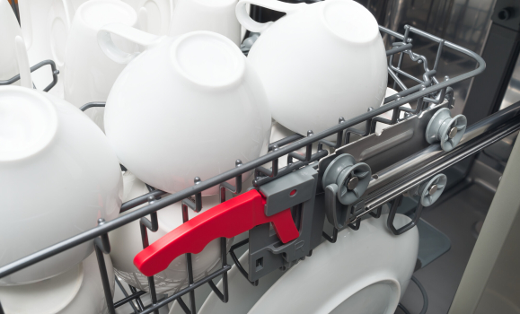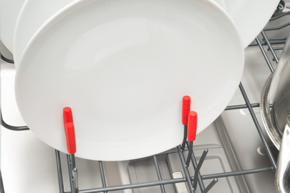 Can’t fit everything inside? We can move the top rack up or down, giving us more space for large pots or for tall cups and glasses. Now we can move the rack even when it’s fully loaded!